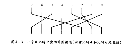 P盒的作用是扩散(Diffusion),目的是让明文和密钥的影响迅速扩散到整个密文中。即1位的明文或密钥的改变会影响到密文的多个比特 [1] 。