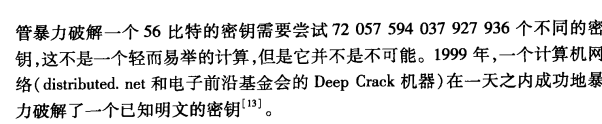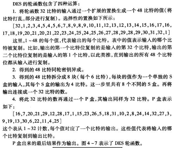 DES设计中使用了分组密码设计的两个原则:混淆(confusion)和扩散(diffusion),其目的是抗击敌手对密码系统的统计分析。混淆是使密文的统计特性与密钥的取值之间的关系尽可能复杂化,以使密钥和明文以及密文之间的依赖性对密码分析者来说是无法利用的。扩散的作用就是将每一位明文的影响尽可能迅速地作用到较多的输出密文位中,以便在大量的密文中消除明文的统计结构,并且使每一位密钥的影响尽可能迅速地扩展到较多的密文位中,以防对密钥进行逐段破译。