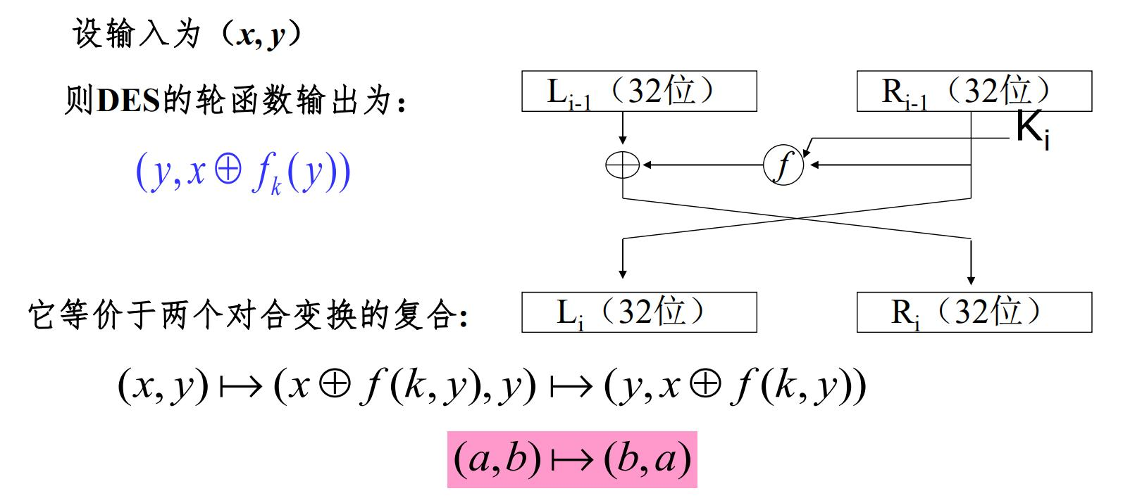注意,无论 f 函数如何选取,DES的轮函数是一个对合变换。(第二个公式可能有错)