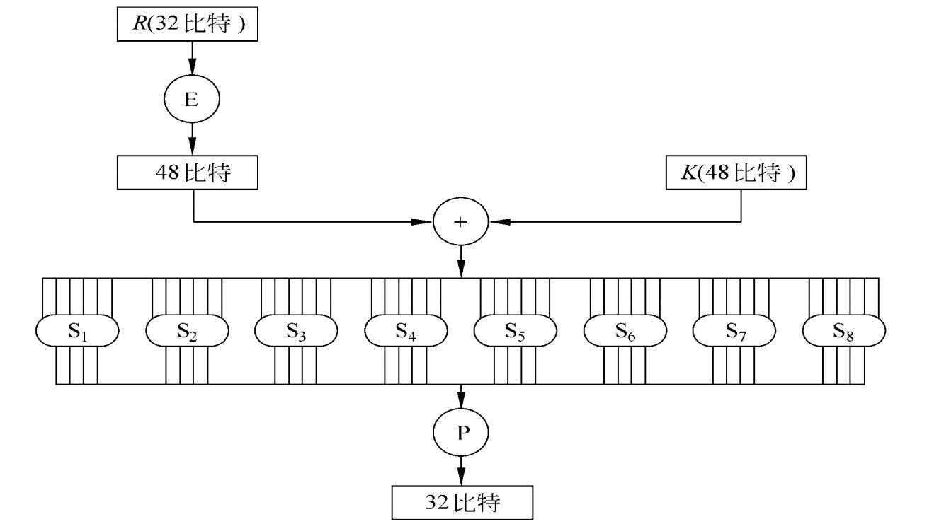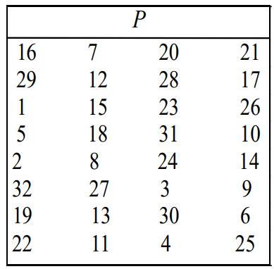 将S-盒变换后的32比特数据再进行P盒置换,置换后得到的32比特即为 f 函数 的输出。