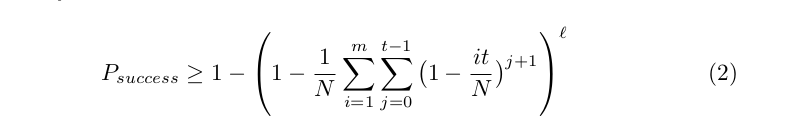 上面是单表的情况,为了更高的成功率,一般会使用不同的reduction函数。可能的成功率如下: