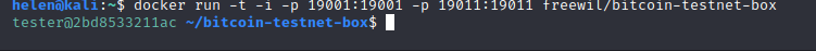 docker run -t -i -p 19001:19001 -p 19011:19011 freewil/bitcoin-testnet-box