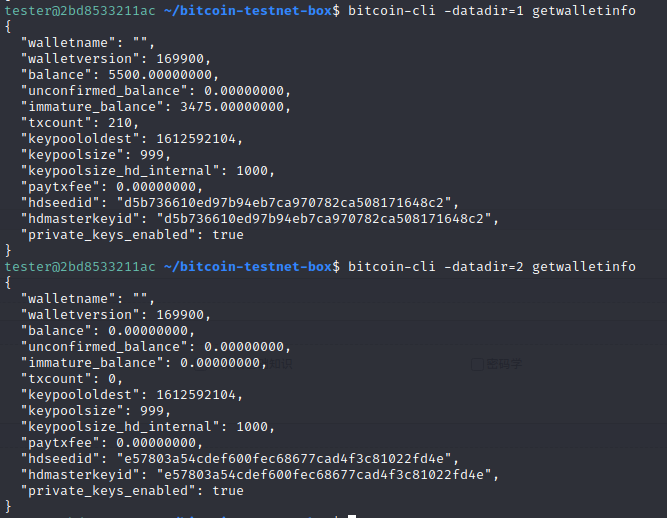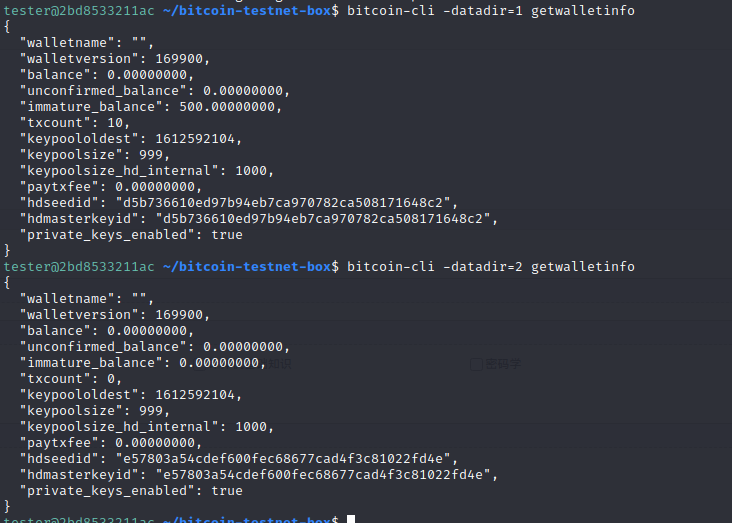 bitcoin-cli -datadir=1 getwalletinfo bitcoin-cli -datadir=2 getwalletinfo