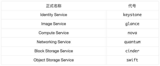 表 1. OpenStack 服务和代号