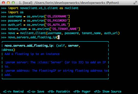 Python 的一个优势在于它的可读性,没有任何方法能够比阅读源代码更好地了解 API。所有包都托管在 openstack 小组中的 github 上。例如,要获取 nova API 源代码的副本,可运行以下命令: