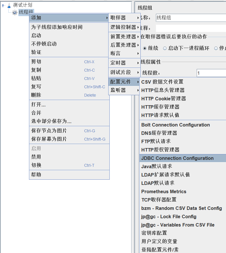 第三步:创建JDBC Request