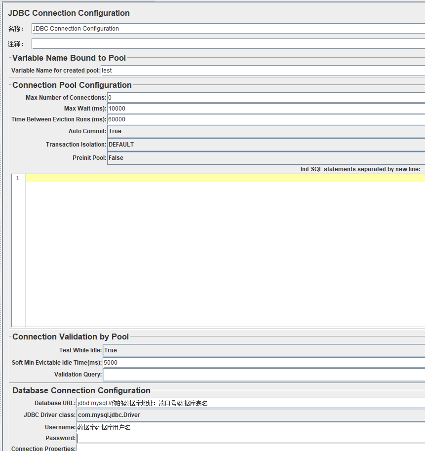 JDBC Request 界面介绍