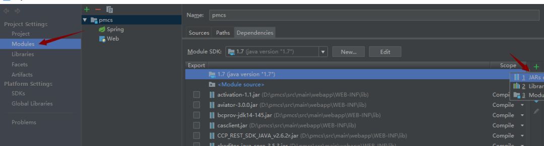 1、把项目中lib文件夹下的jar包加进去,检查一下JDK版本