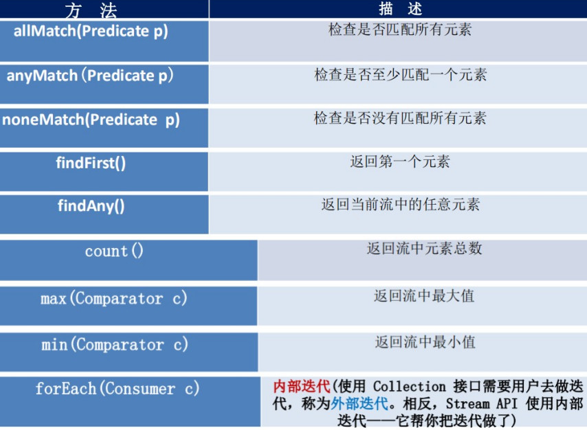 多个中间操作可以连接起来形成一个流水线,除非流水线上触发终止操作,否则中间操作不会执行任何的处理!而在终止操作时一次性全部处理,称为“惰性求值”。