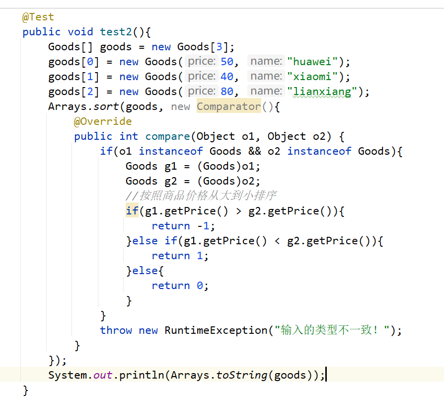 二、定制排序:使用Comparator接口