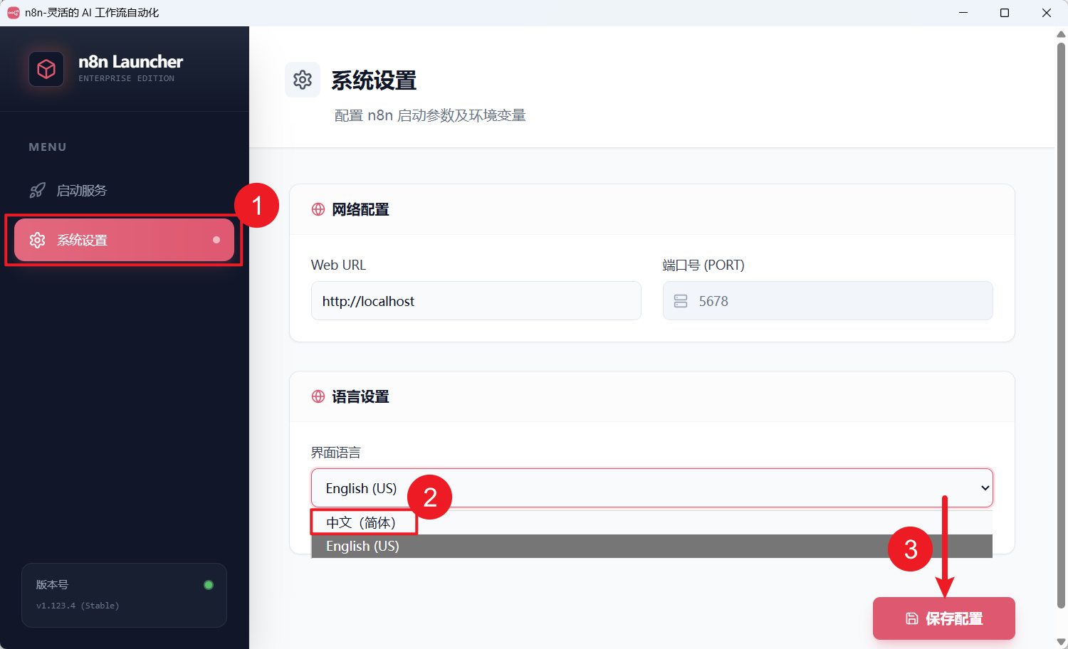 我给原来的一键安装包增加支持中英文切换功能,同时也将n8n版本升级到了最新版本v1.123.4,且含windows和mac版本。