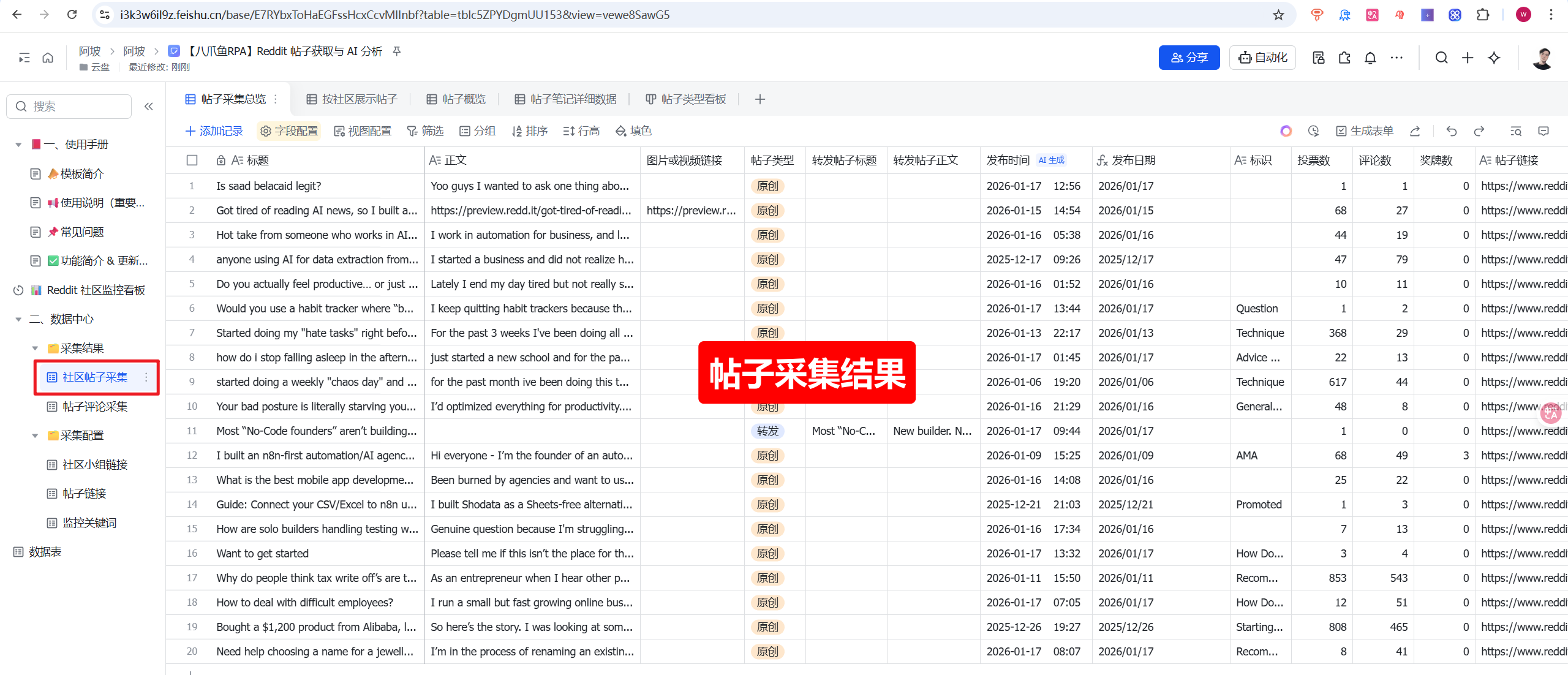 - Reddit-获取社区与帖子信息-同步到飞书多维表格