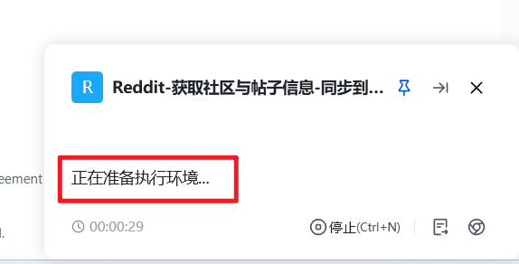 待环境配置成功、流程可正常启动后,请先暂停流程,重新开启 VPN/代理(因为访问 Reddit 需要魔法),然后再次运行流程。