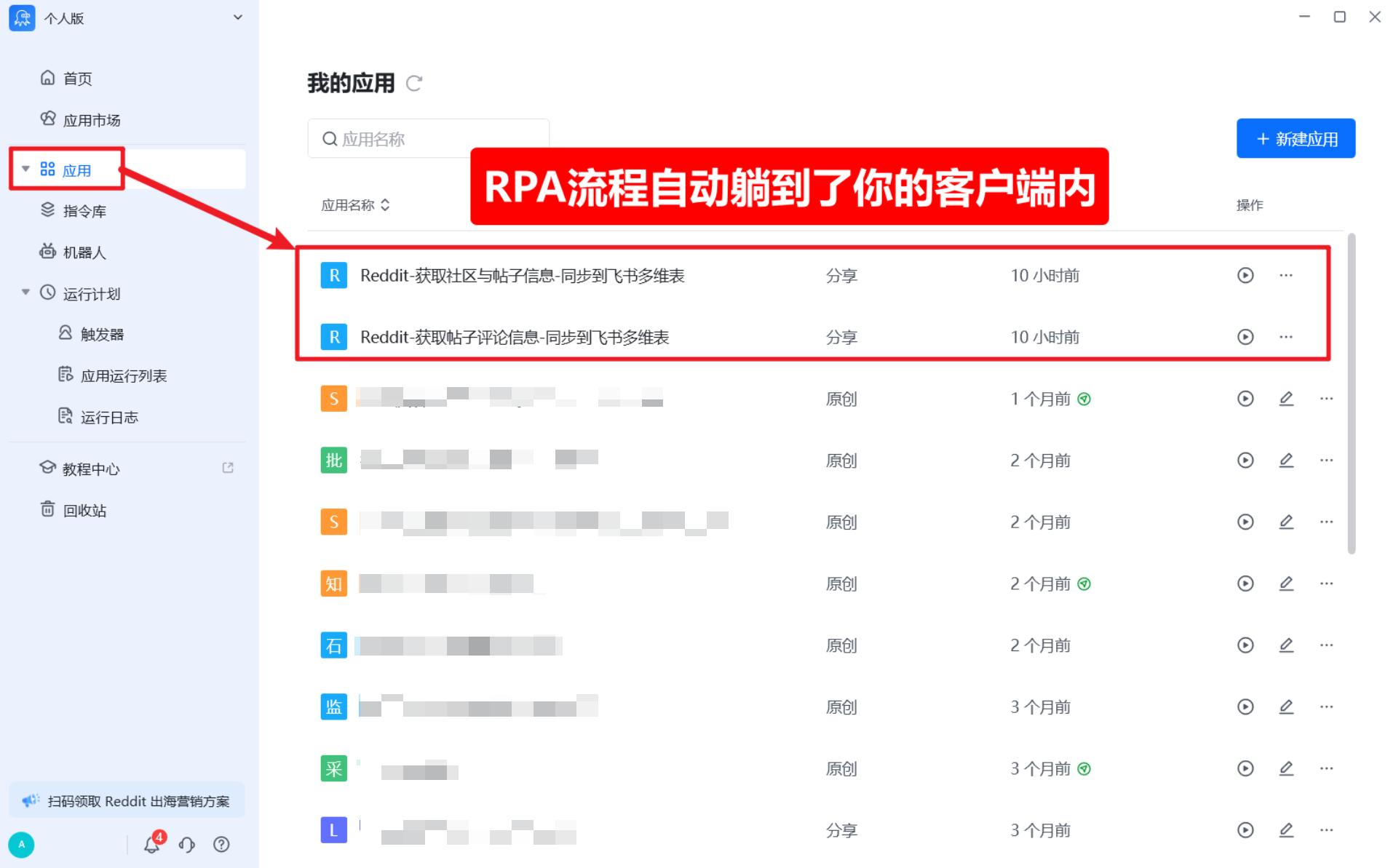 打开八爪鱼 RPA 客户端,即可在流程库中看到已获取的流程: