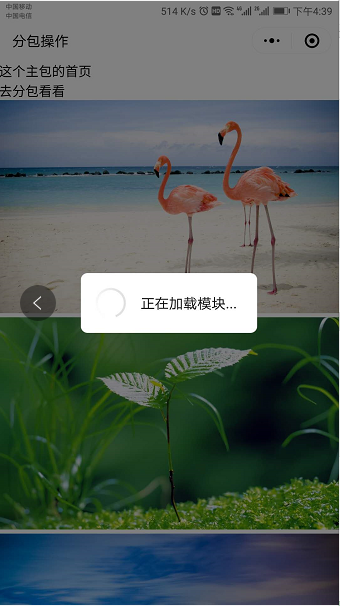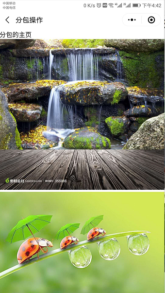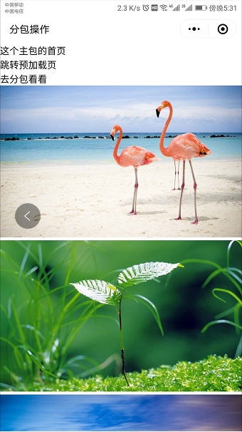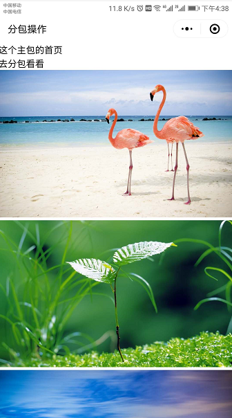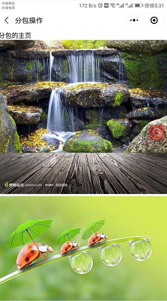 在主包的首页设置个点击跳转到分包,把图片都引入,然后点击预览