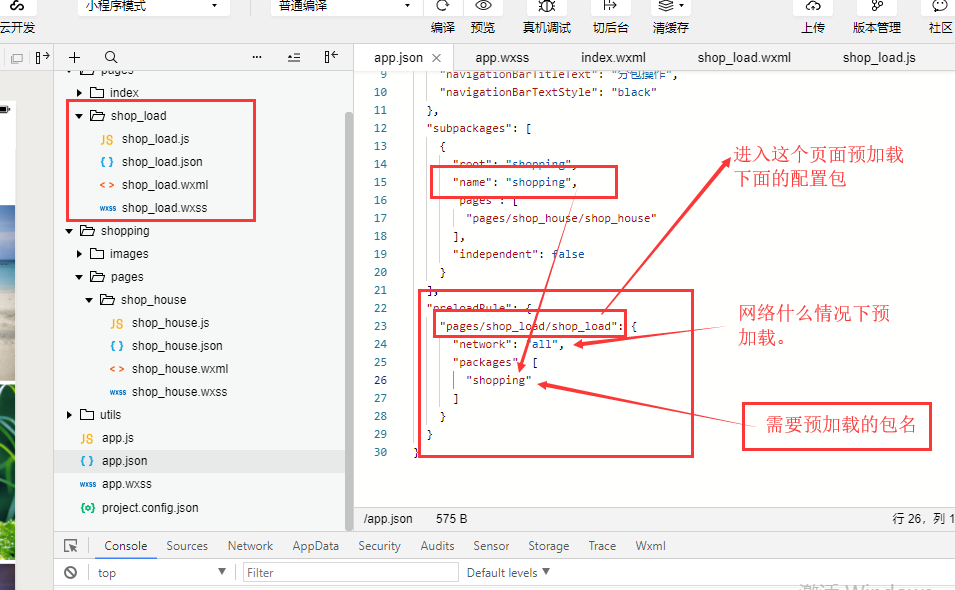这样配置的效果就是当我们进入到shop_load(自己随便新建一个页面)的时候会静默的加载我们的shopping包。当我们在进入包页面的时候,就流畅进入了。