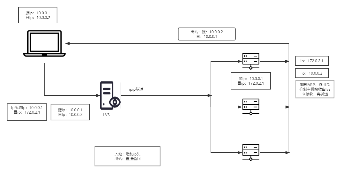 1.tun是隧道模式,是通过ipip隧道实现的,数据包返回的时候不经过调度器
