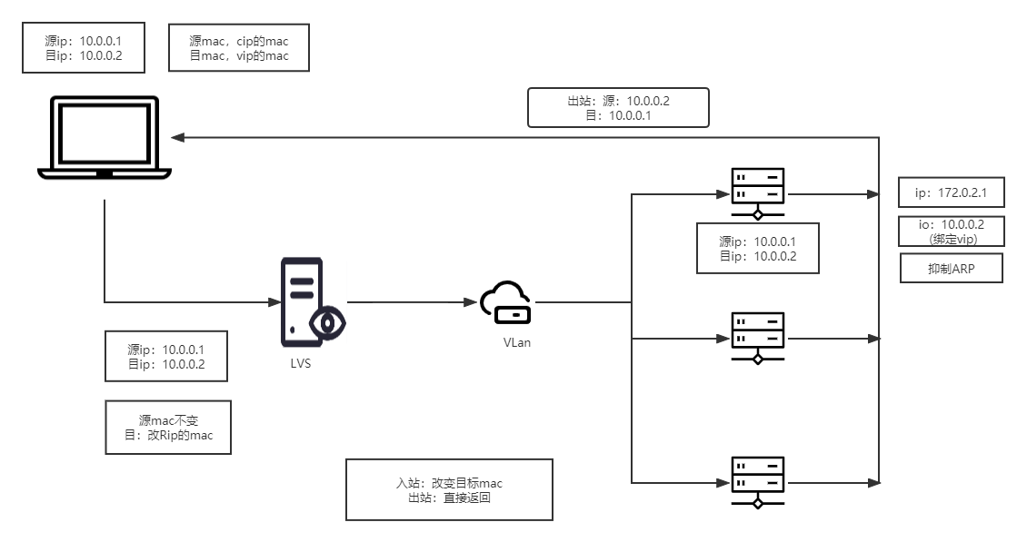 2.dr模式实现原理,不改变源ip和目的ip,只改变目的mac地址