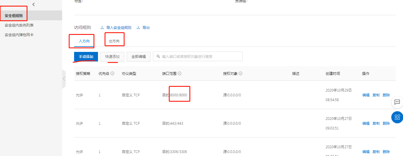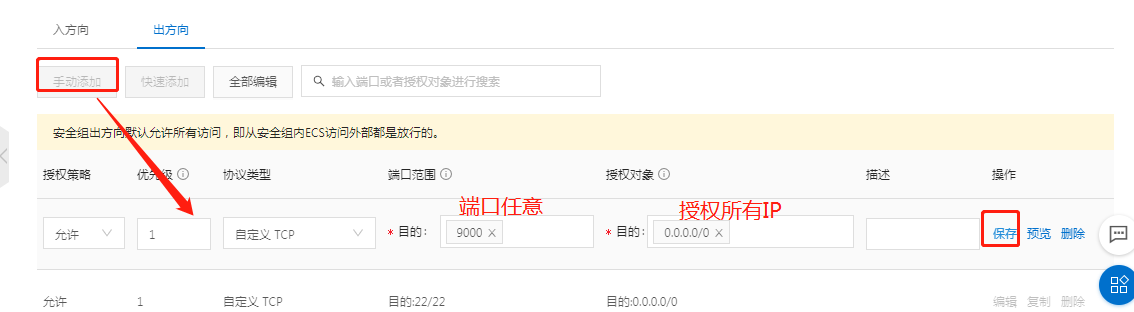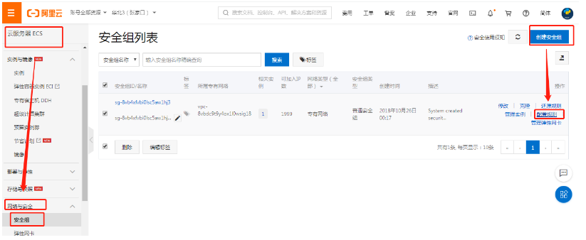 网络与安全--->安全组--->创建一个安全组--->配置![]![]