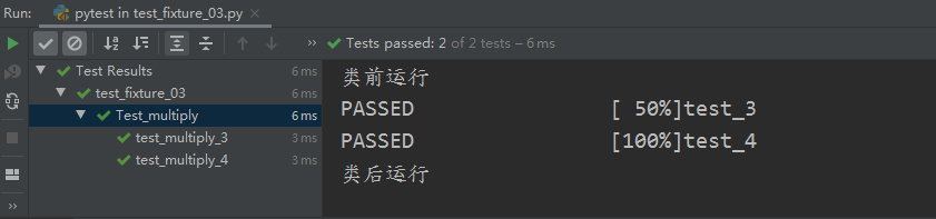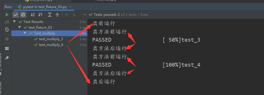 运行结果如图所示:在两个普通测试方法运行前后 执行,在class内的测试方法前后 没有执行。