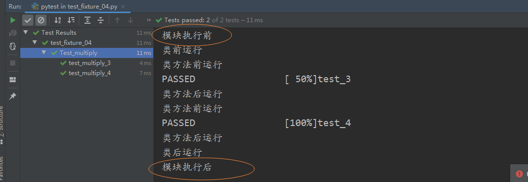 运行结果如图:这两个方法在类中使用,并且在类运行前 和 类运行后 执行