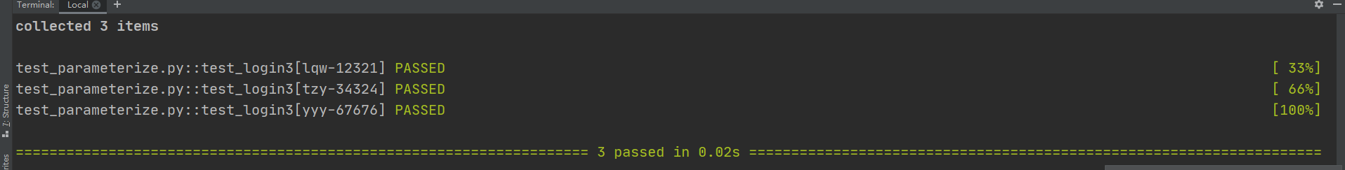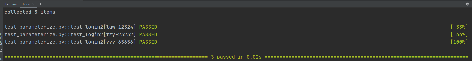 # 比如:parameterize("username,pwd",[("yy1","pwd1"),("yy2","pwd2"),("yy3","pwd3")])
