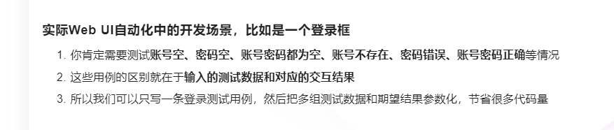 通常一组数据没办法覆盖所有的测试场景,所以需要通过参数化 去传递多组测试数据。