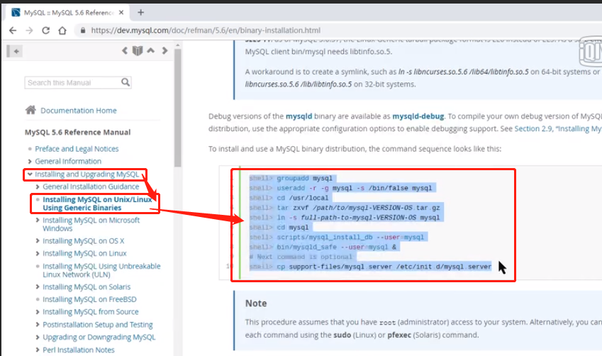 shell> tar zxvf /path/to/mysql-VERSION-OS.tar.gz #下载的包解压到 /usr/local