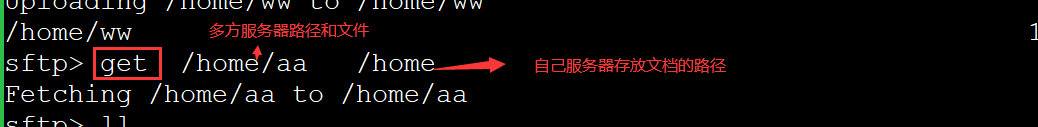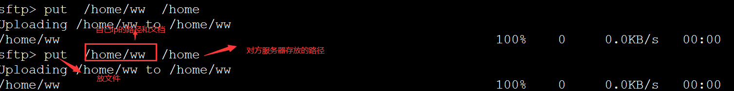 格式:put 自己服务的路径和文档 对方服务器存放的地址