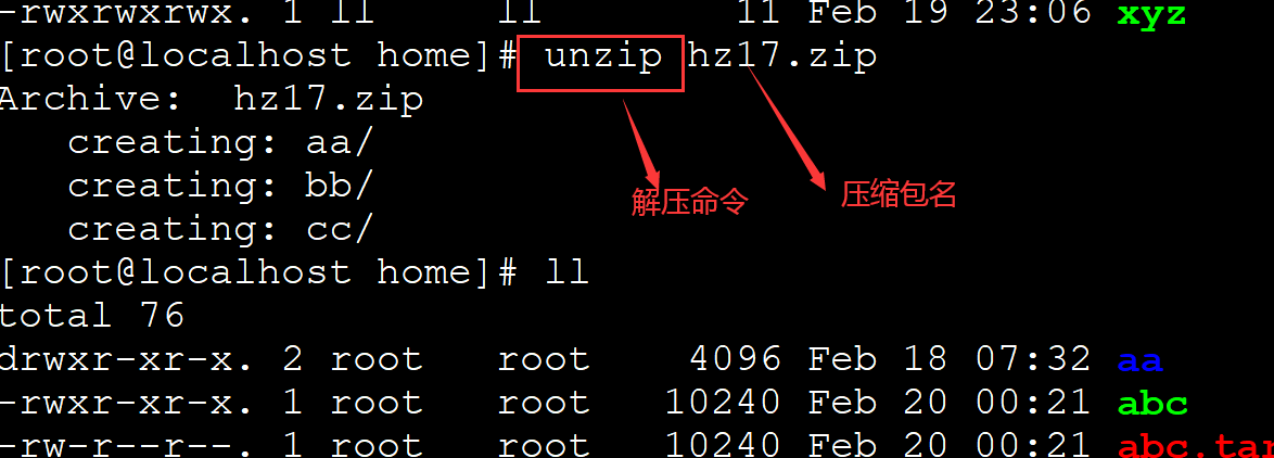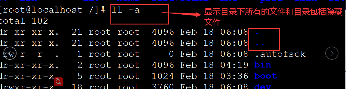 (2)ll -a 显示目录下所有的文件和隐藏文件
