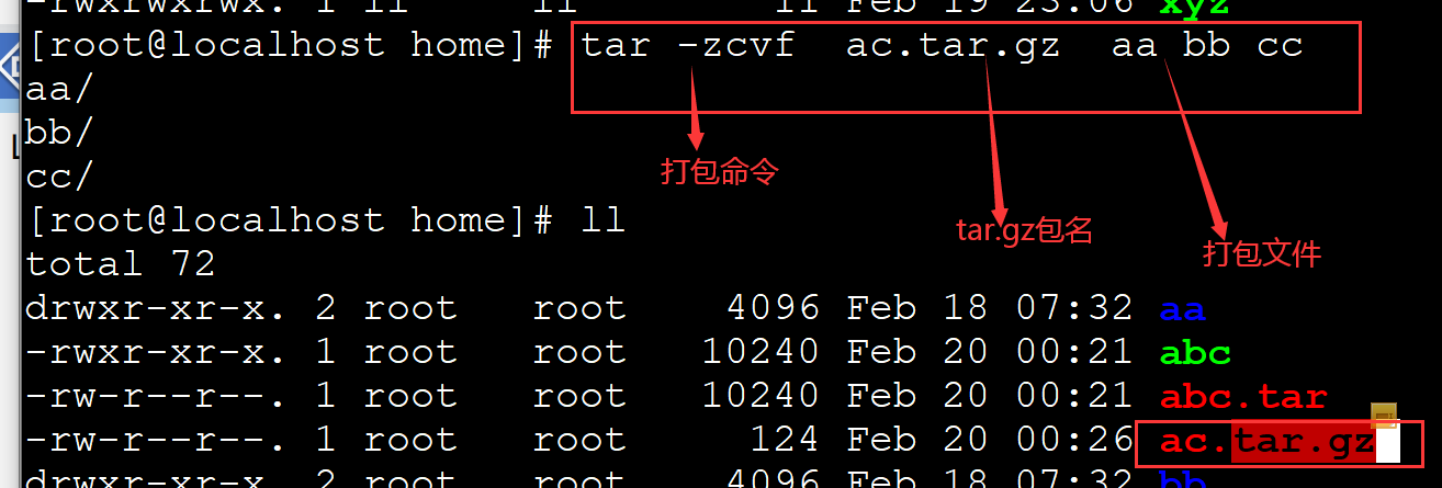 格式:tar -cvf 压缩包 文件1、文件2,文件3等