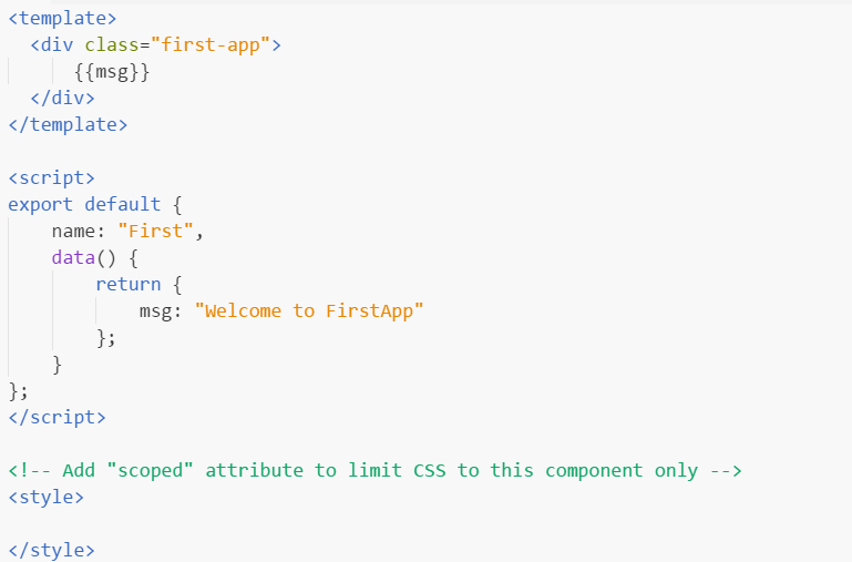 <template> <div class="first-app"> {{msg}} </div> <div class="first-app"> {{msg}} </div > </template>
