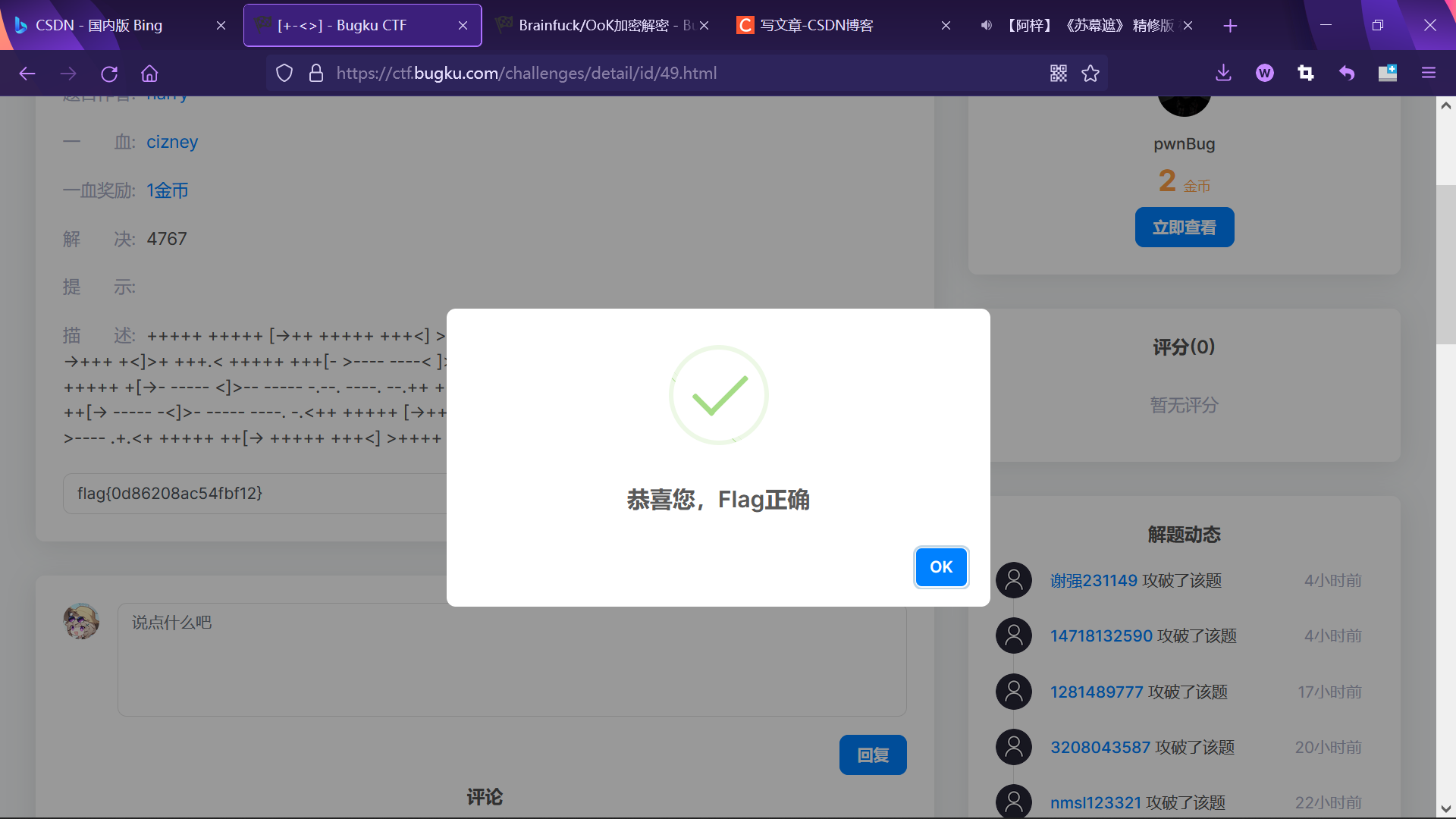 Brainfuck解码 Brainfuck/OoK加密解密 - Bugku CTF