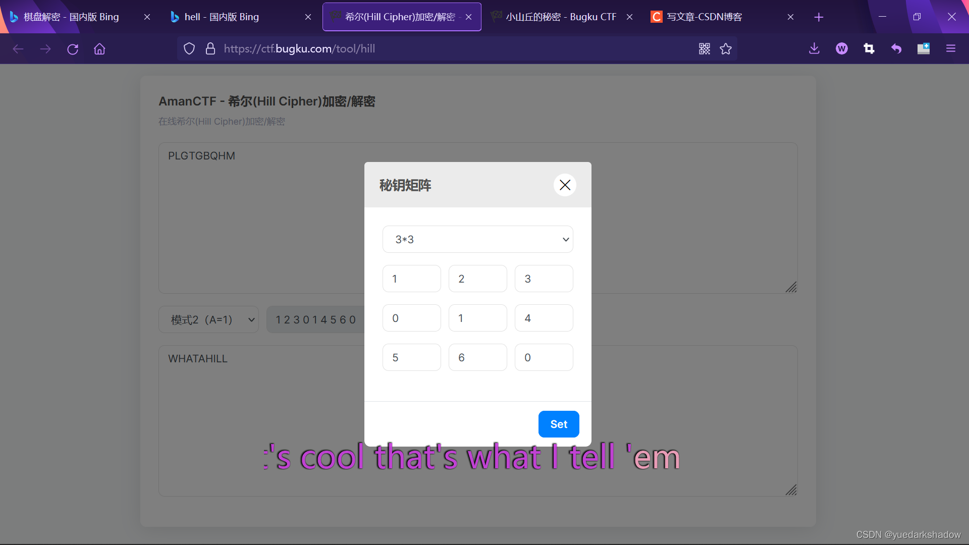 希尔解密(hill cipher)希尔(Hill Cipher)加密/解密 - Bugku CTF