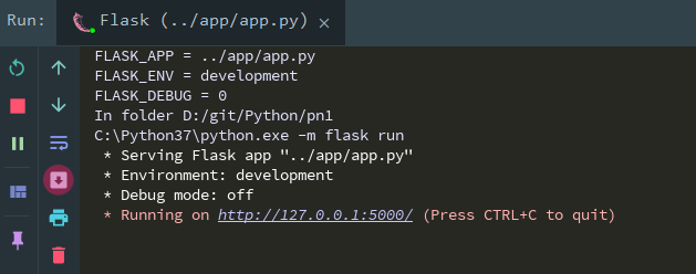执行程序后,就会启动Flask的程序,它内部自带了服务了,默认的端口是5000,见启动后的如下图所示。