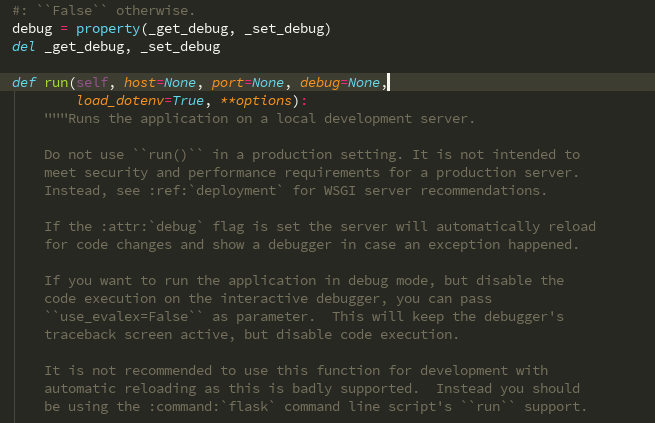 中需要指定下,app.py程序中添加指定IP的地址和指定的端口号。查看run的方法源码,就可以看到里