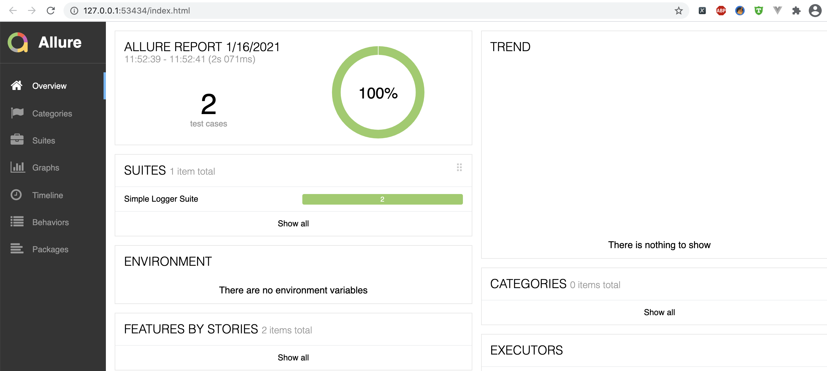 再次执行命令:allure serve target/allure-results,就能够看到结果报告信息了,如下所示: