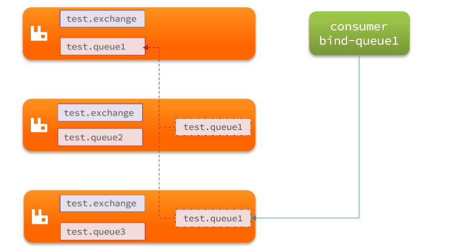- 当访问集群某节点时,如果队列不在该节点,会从数据所在节点传递到当前节点并返回