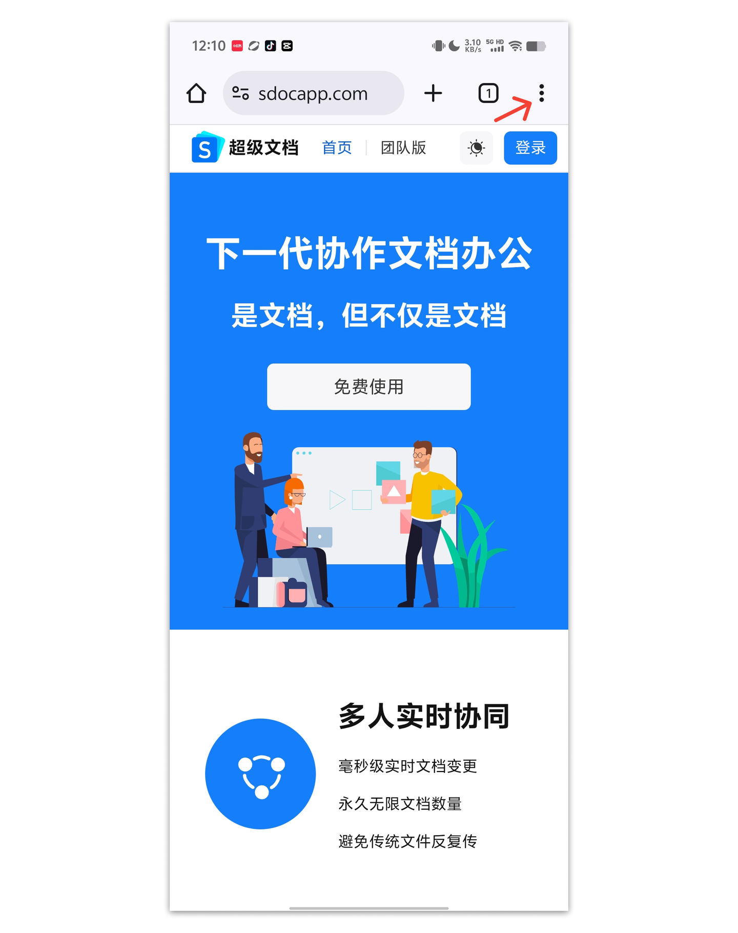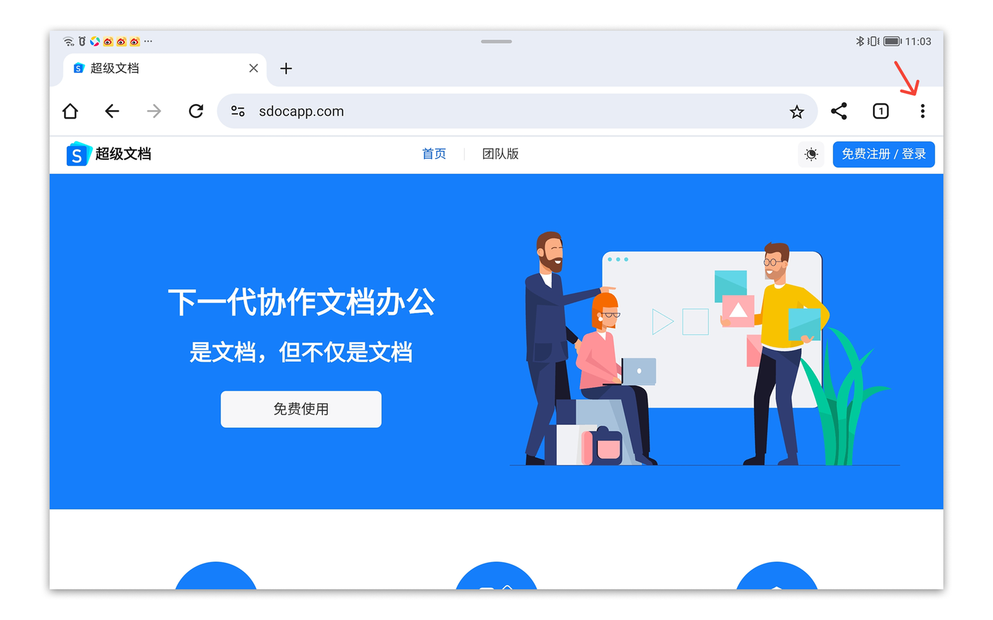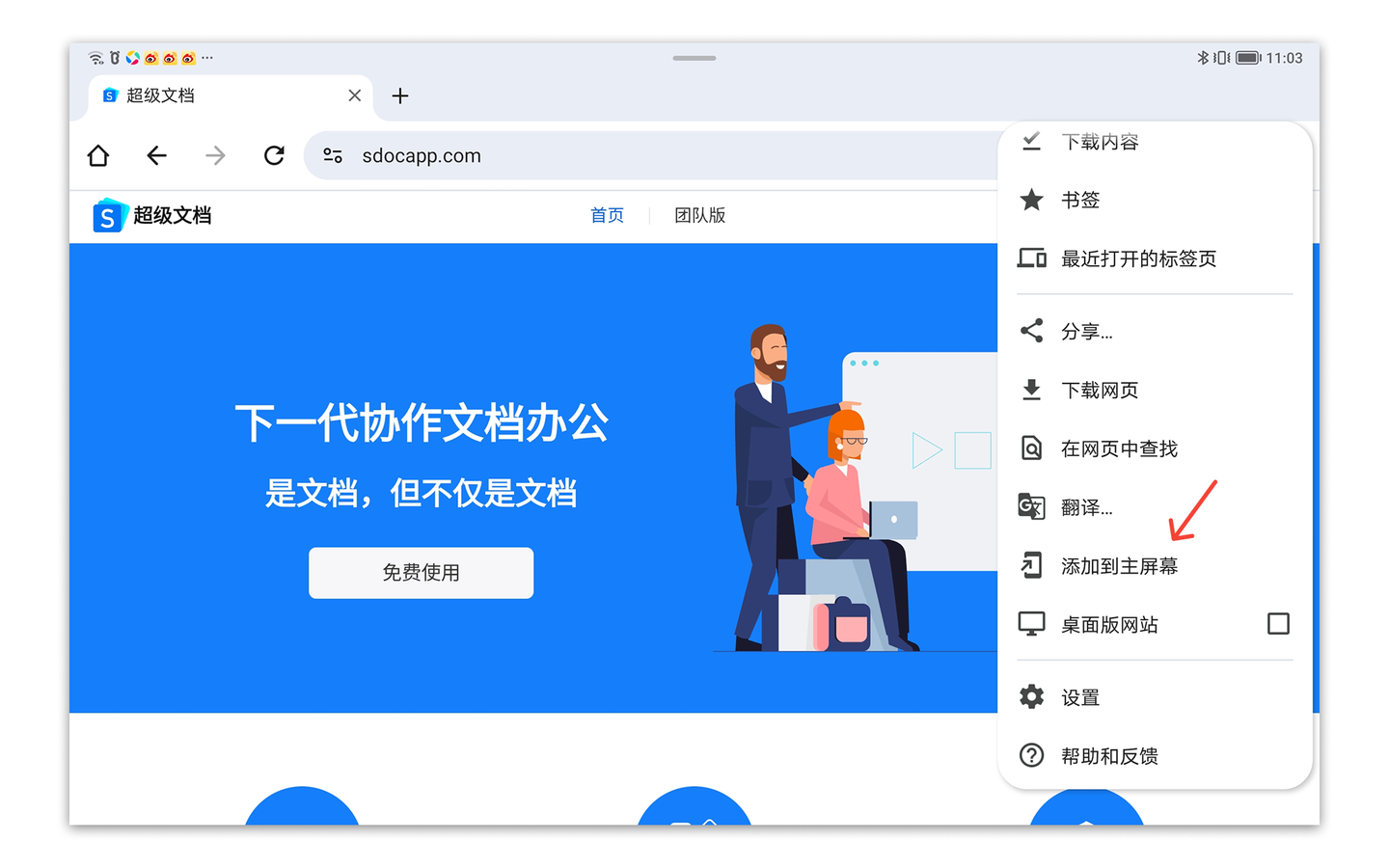 1.使用谷歌Chrome浏览器访问超级文档官网(可在应用宝市场中下载Chrome浏览器)