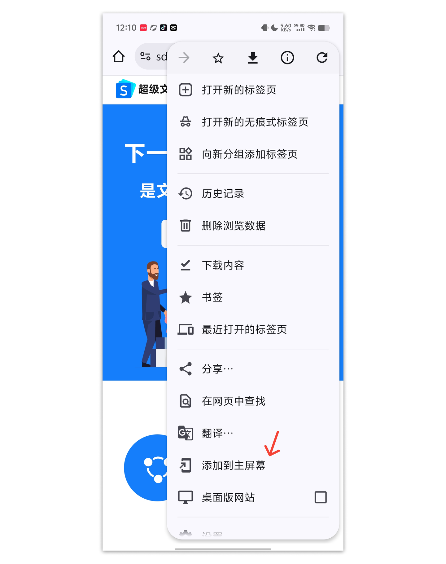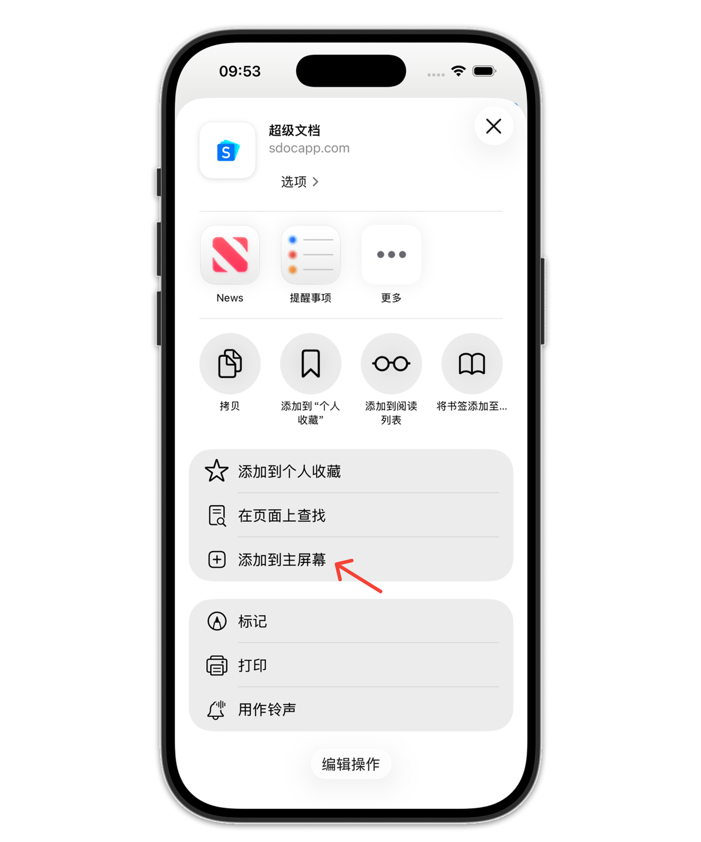 3.点击下方“添加到主屏幕”
