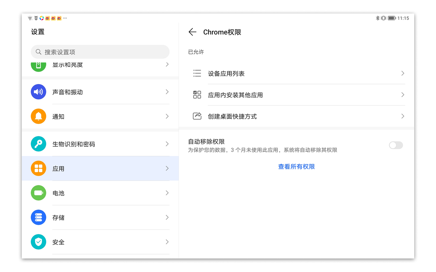 注意:若添加到主屏幕没效果,可能原因为部分厂商设备默认禁止了谷歌Chrome浏览器权限,可进入系统设置 - 应用 - 找到 Chrome 权限,允许“创建桌面快捷方式”权限,重启 Chrome 浏览器后再次尝试