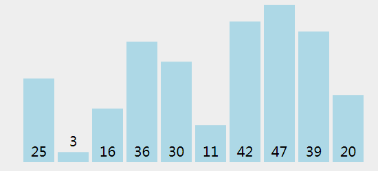 - 第一次比较:首先比较第一个和第二个数,将小数放在前面,将大数放在后面。