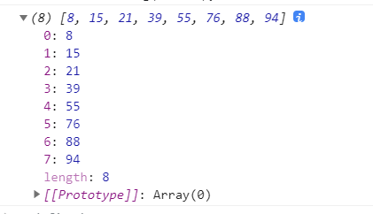 let array=[8, 15, 21, 39, 55, 76, 88, 94]