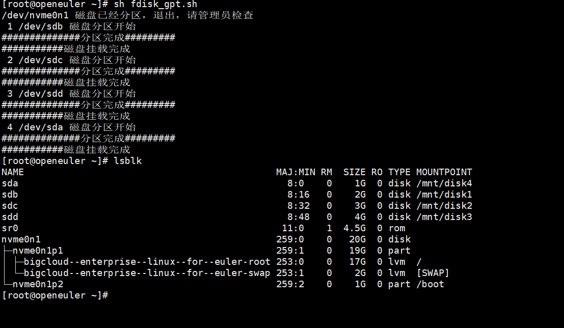 echo "$i 磁盘已经分区,退出,请管理员检查"