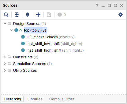 shift实例都显示为黄色菱形,表示它们是分区。您还将在此窗口中看到 Partition Definitions 选项卡,其中显示设计中所有分区定义的列表和内容(此时只有一个)。此外,还创建了一个脱离上下文的运行(Run)来综合 shift_right 模块。此时,Source 视图中的两个