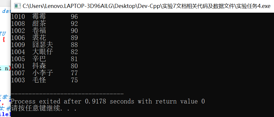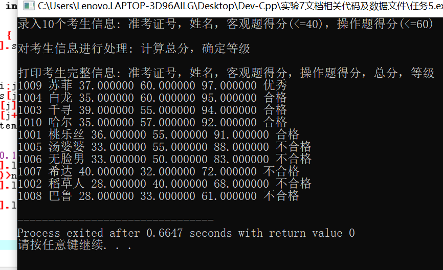 1.屏幕上正确显示了分数由高到低排序的学生信息 生成了二进制文件file4.dat 但是用记事本打开后其中的信息是混乱的