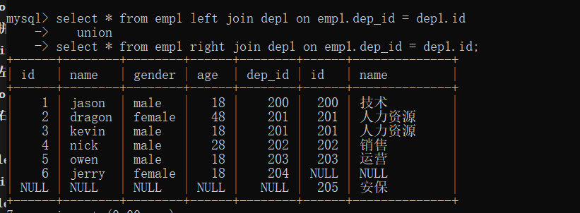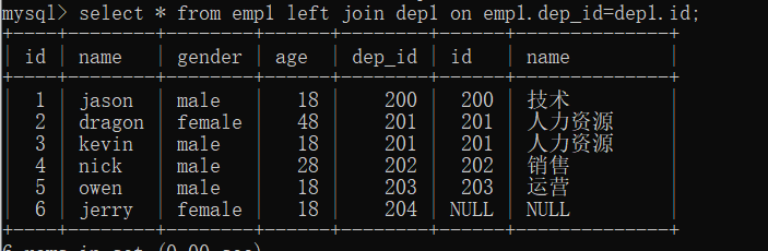 select * from emp1 left join dep1 on emp1.dep_id = dep1.id