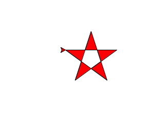 import turtle turtle.fillcolor("red") turtle.begin_fill() count = 1 while count <= 5: turtle.forward(100) turtle.right(144) count += 1 turtle.end_fill()