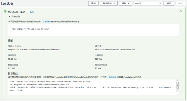 InvokeRequest request = new InvokeRequest().withFunctionName("test06").withLogType("Tail")