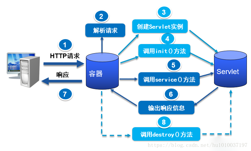 实例化后,Servlet容器将调用init()方法进行初始化(一些准备工作或资源预加载工作)。